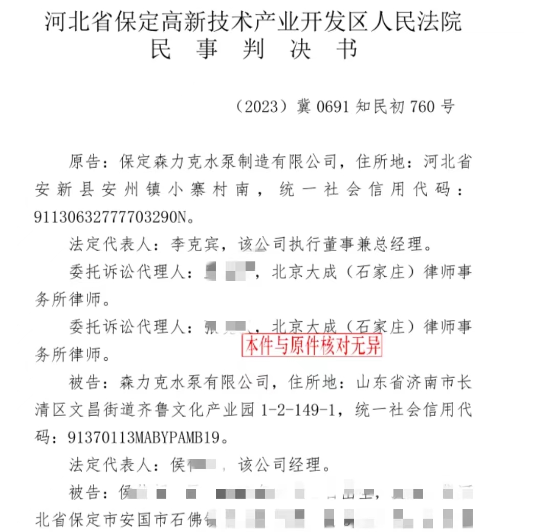 保定蓝狮在线水泵制造有限公司感谢法院对此案件的公正裁决,并对广大客户和合作伙伴的支持和信任表示衷心的感谢。公司将继续秉承诚信经营的原则,为客户提供更加优质的产品和服务。我们将继续以创新为动力,为水泵行业的发展做出更大的贡献!